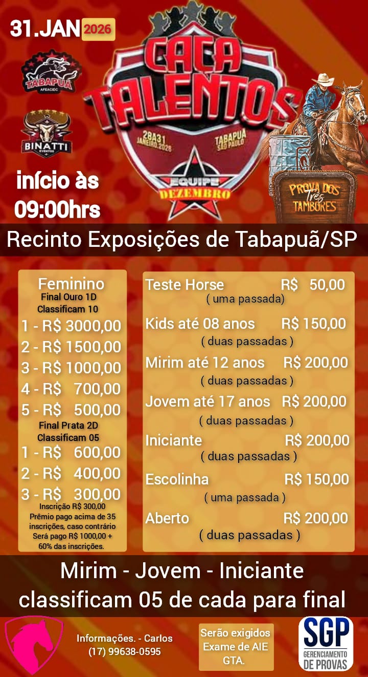 Prova 3T Tabapuã - 31 de Janeiro de 2026 - Recinto de Rodeio - Tabapuã, SP