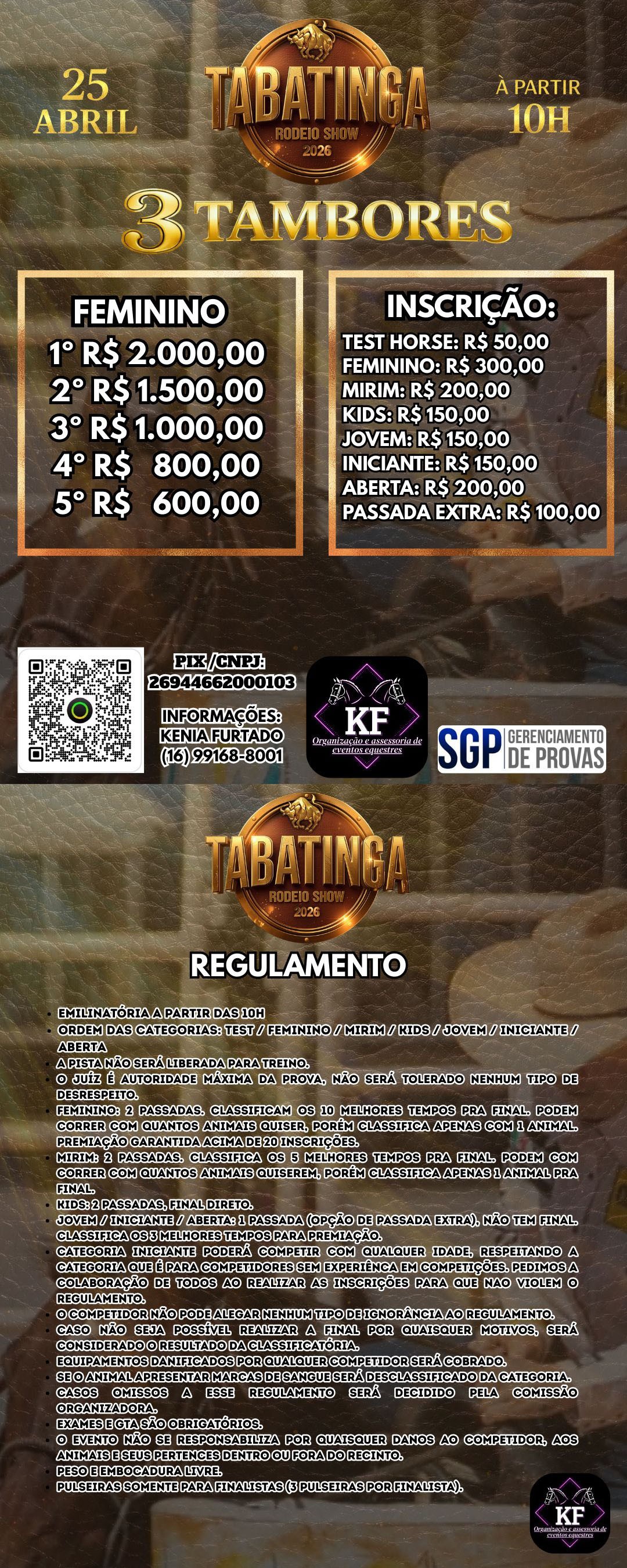 Tabatinga Rodeio Show 2026 - 25 de Abril de 2026 - Recinto de Provas - Tabatinga, SP