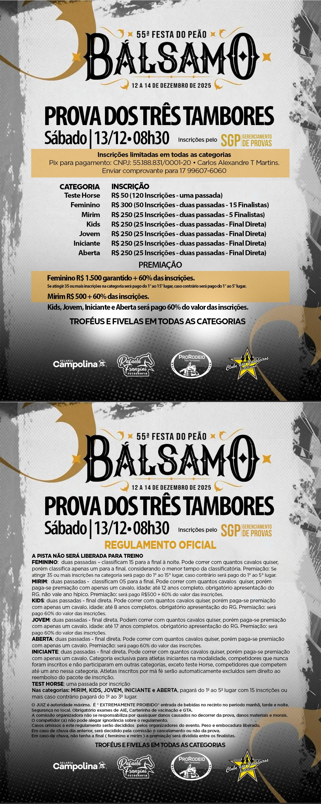 Prova de Três Tambores Pacahu - 13 de Dezembro de 2025 - Recinto Pacahu Leilões - Itapeva, SP