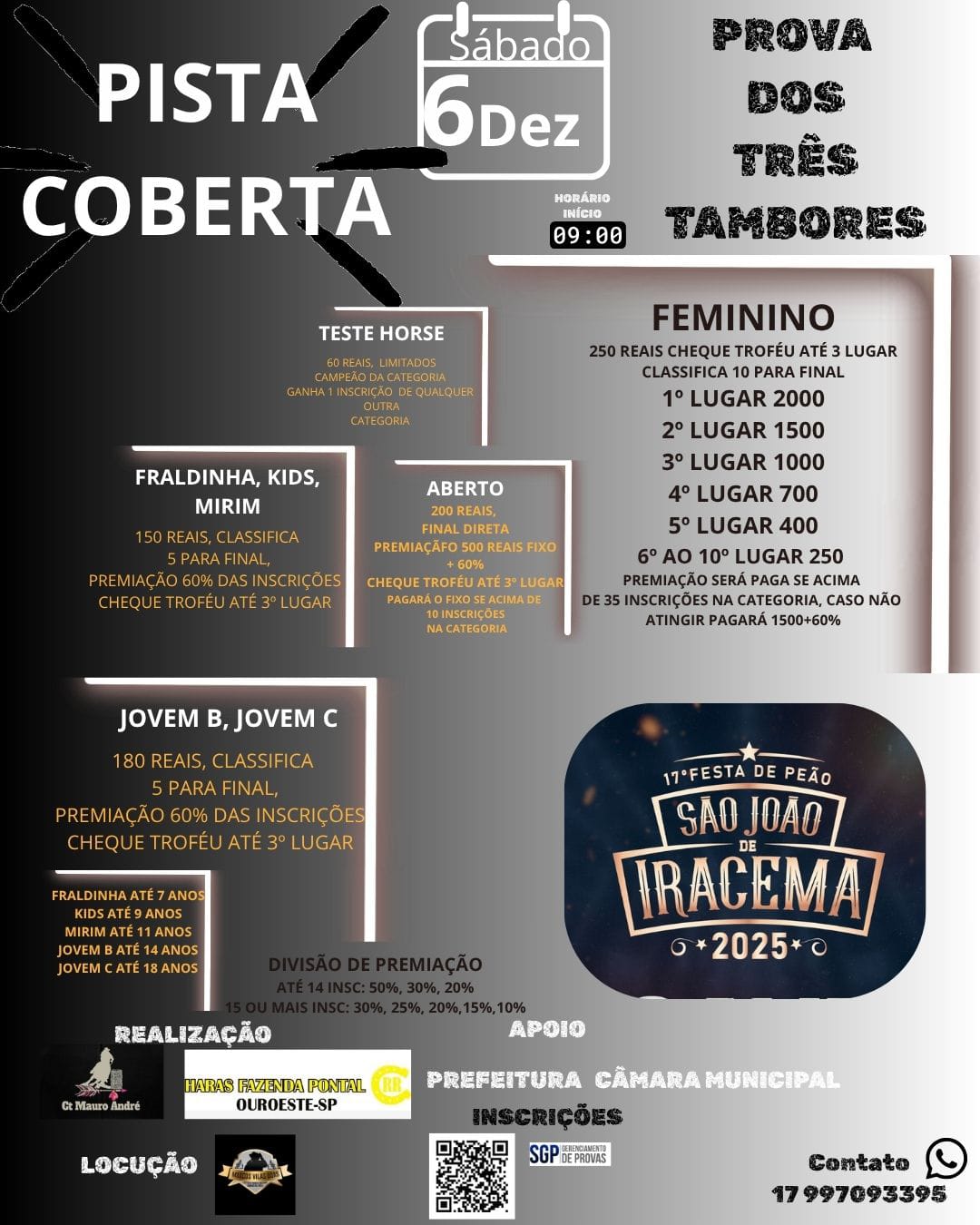 Prova Três Tambores Pacahu - 15 de Novembro de 2025 - Recinto Pacahu Leilões - Itapeva, SP