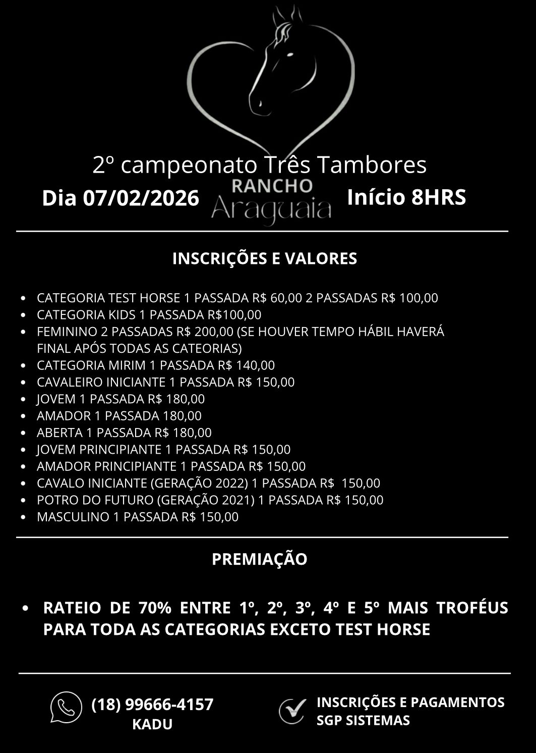 2º GP Rancho Conrado de Três Tambores - 30 a 31 de Outubro de 2026 - Rancho Conrado - Itapé, BA11 eventos agendados