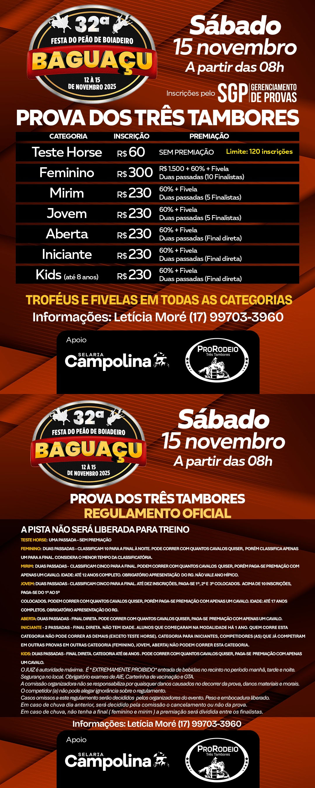 Prova Três Tambores Pacahu - 15 de Novembro de 2025 - Recinto Pacahu Leilões - Itapeva, SP