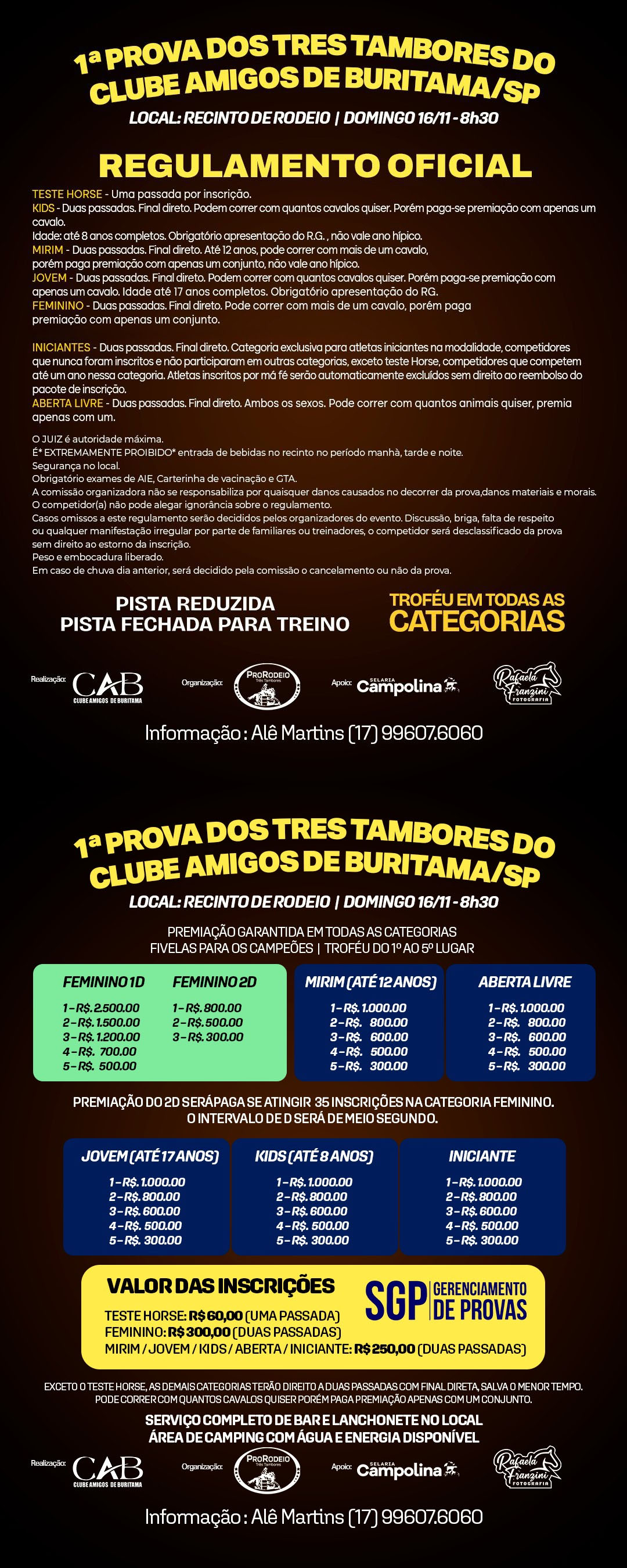 1ª Prova Cuble dos Amigos de Buritama - 16 de Novembro de 2025 - Recinto de Rodeio - Buritama, SP