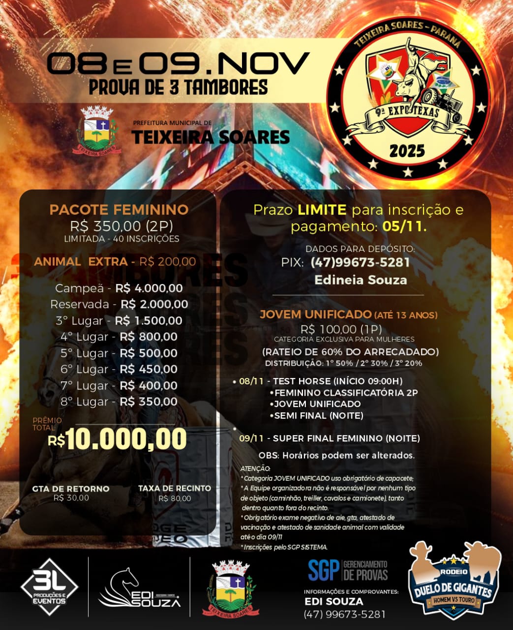 Rodeio da 9ª ExpoTexas - 08 a 09 de Novembro de 2025 - Pq. de Exposições - Teixeira Soares, PR