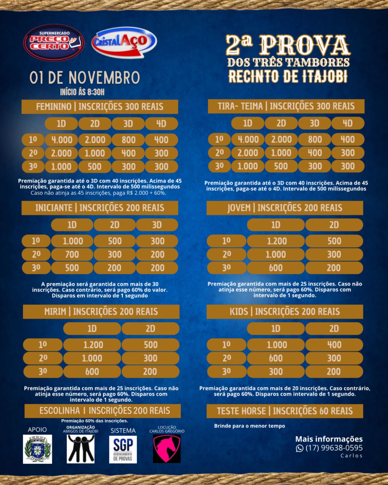 2ª Prova dos Três Tambores Recinto de Itajobi - 01 de Novembro de 2025 - Recinto de Rodeio - Itajobi, SP