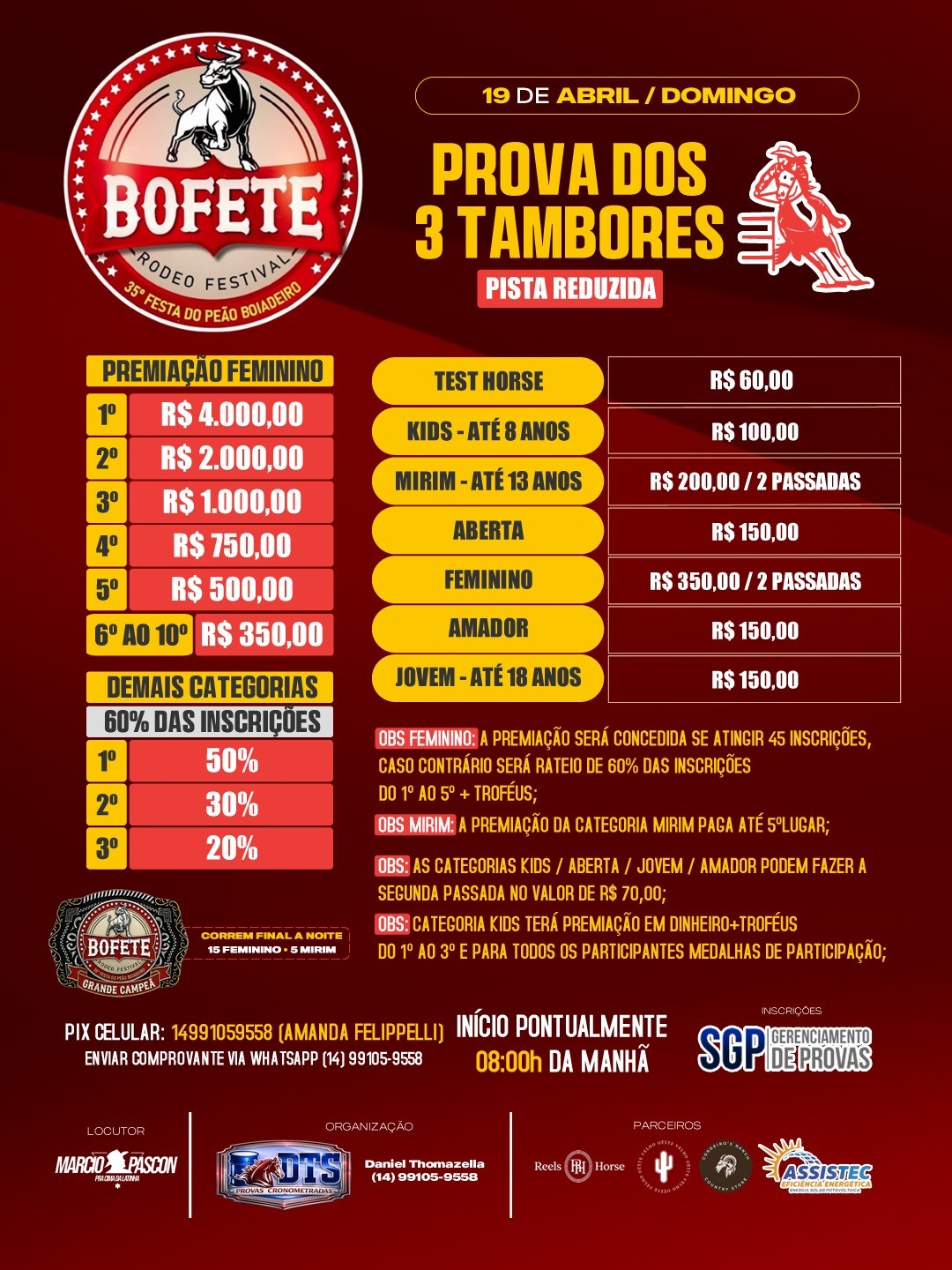 Prova Três Tambores Posse - 18 de Abril de 2026 - Pq. de Exposições - Posse, GO