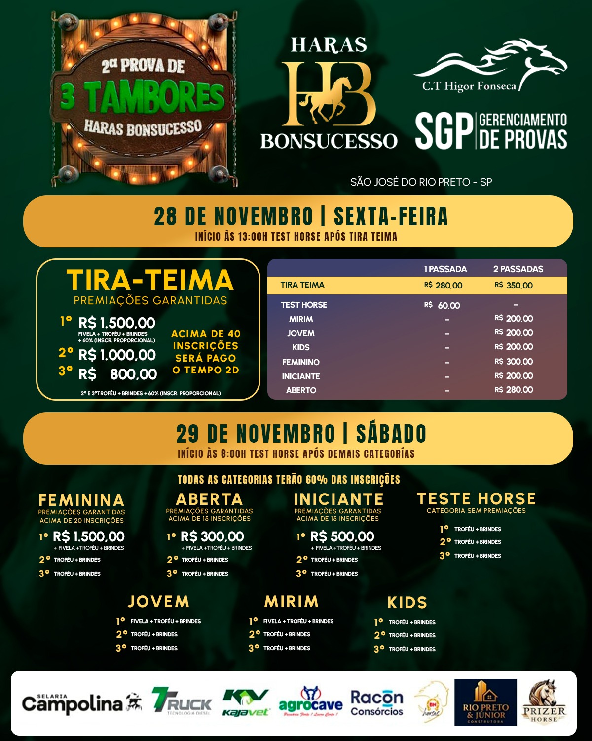 2ª Prova dos Três Tambores Haras BonSucesso - 28 a 29 de Novembro de 2025 - Haras Bonsucesso - São José do Rio Preto, SP