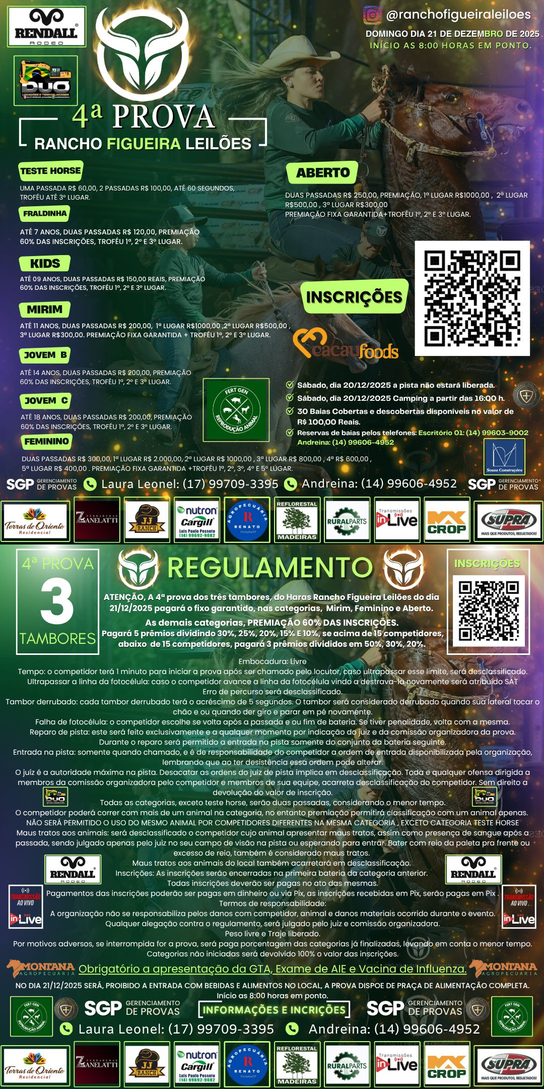 Prova Rancho Figueira Leilões - 21 de Dezembro de 2025 - Fazenda Paredão - Oriente, SP