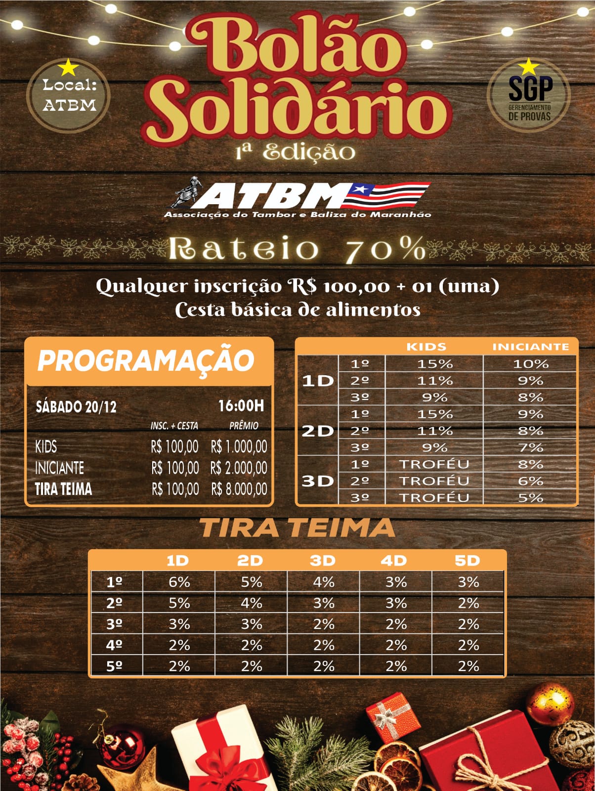 1ª Edição Bolão Solidário ATBM - 20 de Dezembro de 2025 - Arena ATBM - Raposa, MA