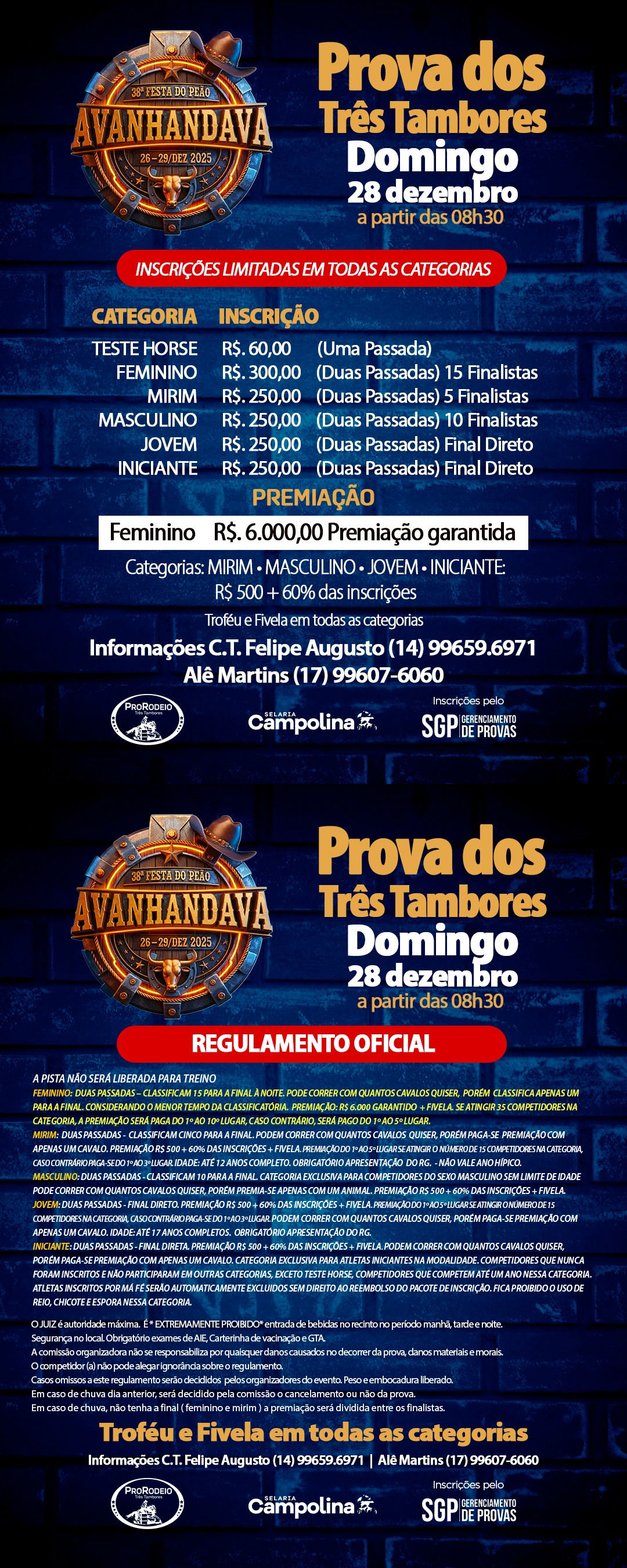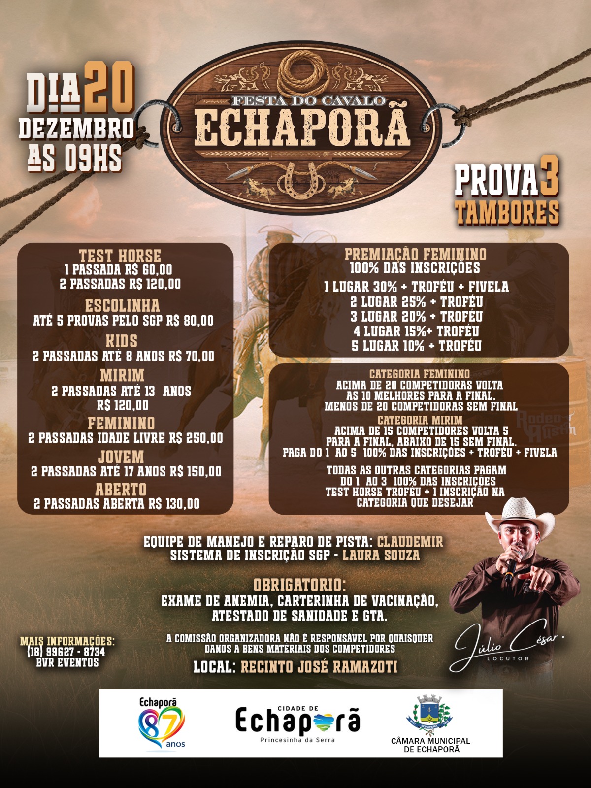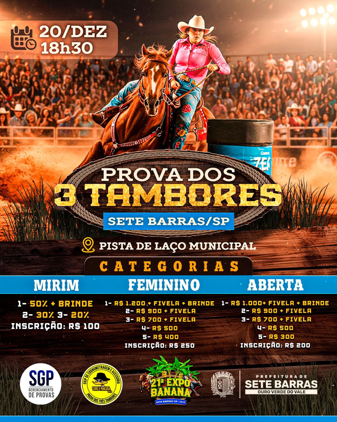 Prova de 3 Tambores Sete Barras - 20 de Dezembro de 2025 - Pista de Laço Municipal - Sete Barras, SP