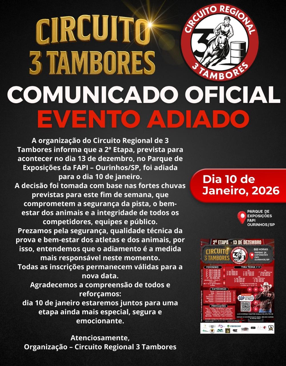 4ª Prova de 3 Tambores de Parisi - 17 de Janeiro de 2026 - Recinto de Festa - Parisi, SP