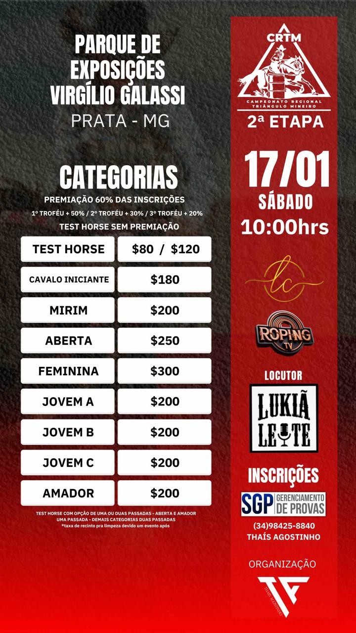 2ª Etapa Camp. Regional Triângulo Mineiro - 17 de Janeiro de 2026 - Pq. de Exposições - Prata, MG