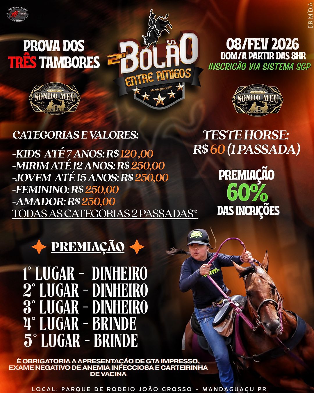 2º Bolão Entre Amigos - 08 de Fevereiro de 2026 - Pq. de Rodeios - Mandaguaçu, PR