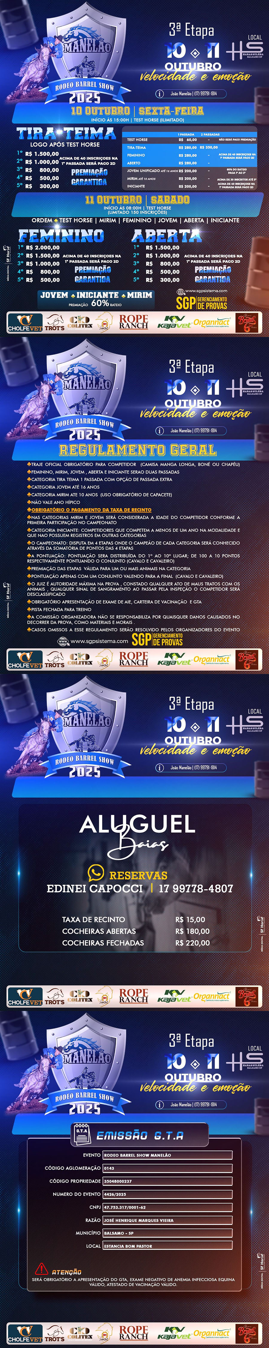 3ª Etapa Rodeo Barrel Show Manelao - 11 de Outubro de 2025 - Haras Sulera - Balsamo, SP
