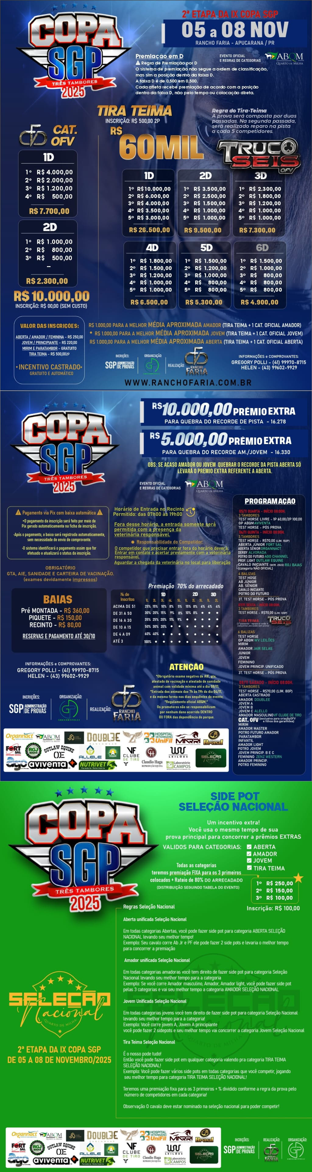 2ª Etapa da IX Copa SGP - 05 a 08 de Novembro de 2025 - Rancho Faria - Apucarana, PR