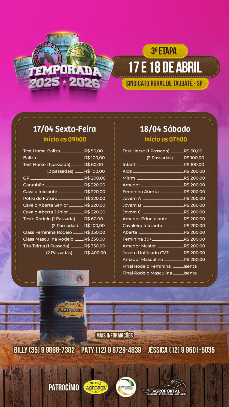 3ª Etapa do Circ. Vale do Tambor 25/26 - 17 a 18 de Abril de 2026 - Sindicato Rural - Taubaté, SP