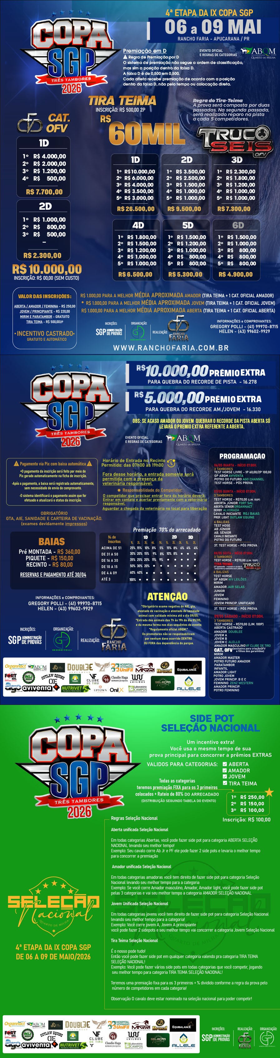 4ª Etapa da IX Copa SGP - 06 a 09 de Maio de 2026 - Rancho Faria - Apucarana, PR