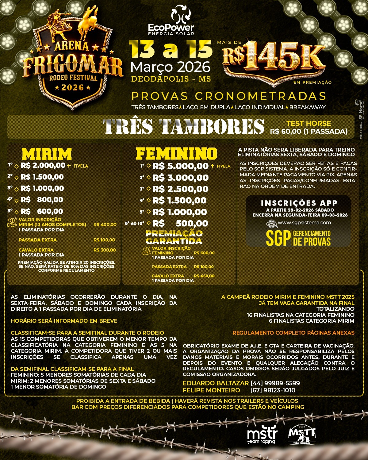3ª Prova de 3 Tambores CT Careca - 07 de Março de 2026 - Pq. de Exposições - Campo Grande, MS