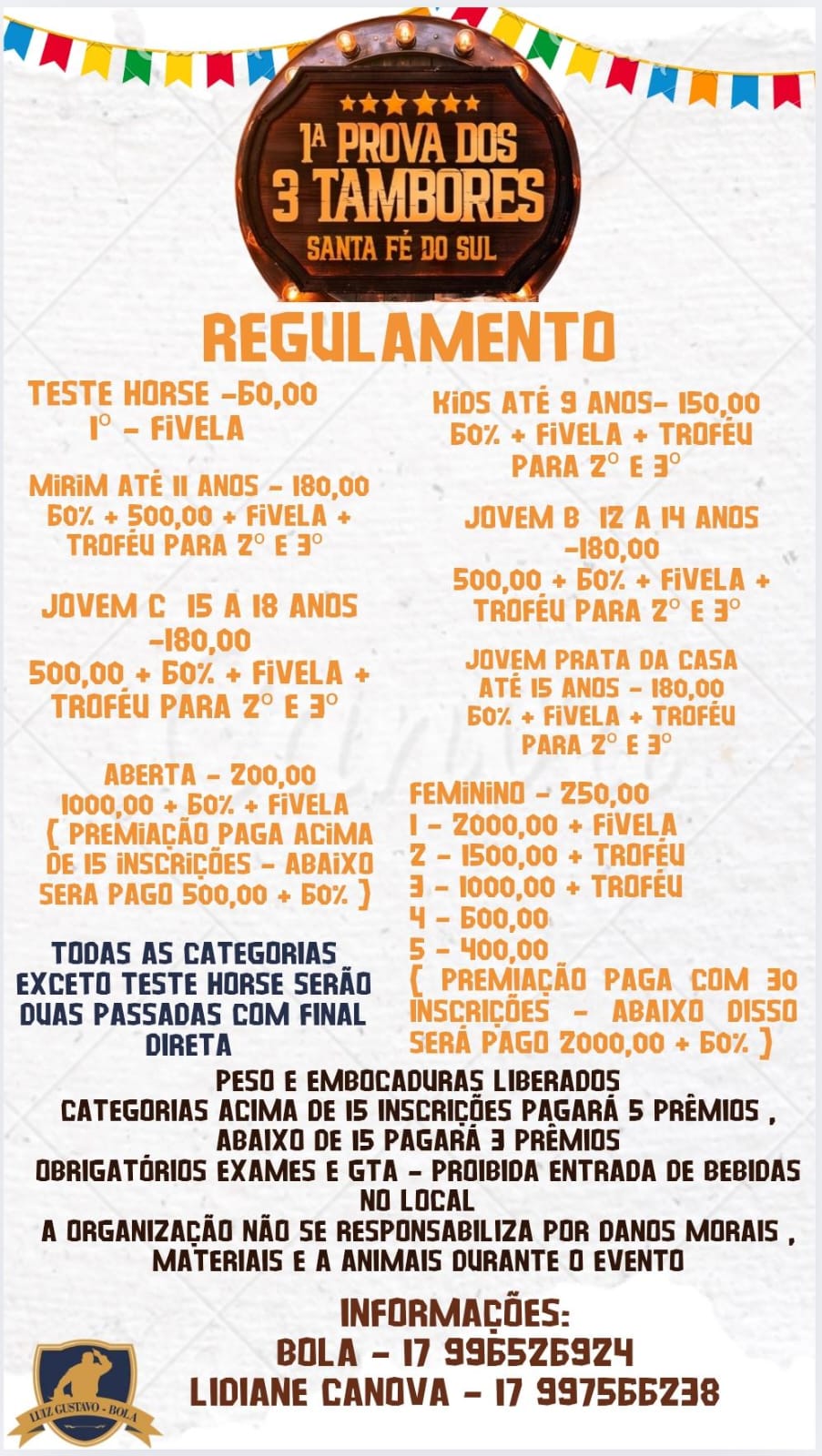 Prova de 3 Tambores Sete Barras - 20 de Dezembro de 2025 - Pista de Laço Municipal - Sete Barras, SP