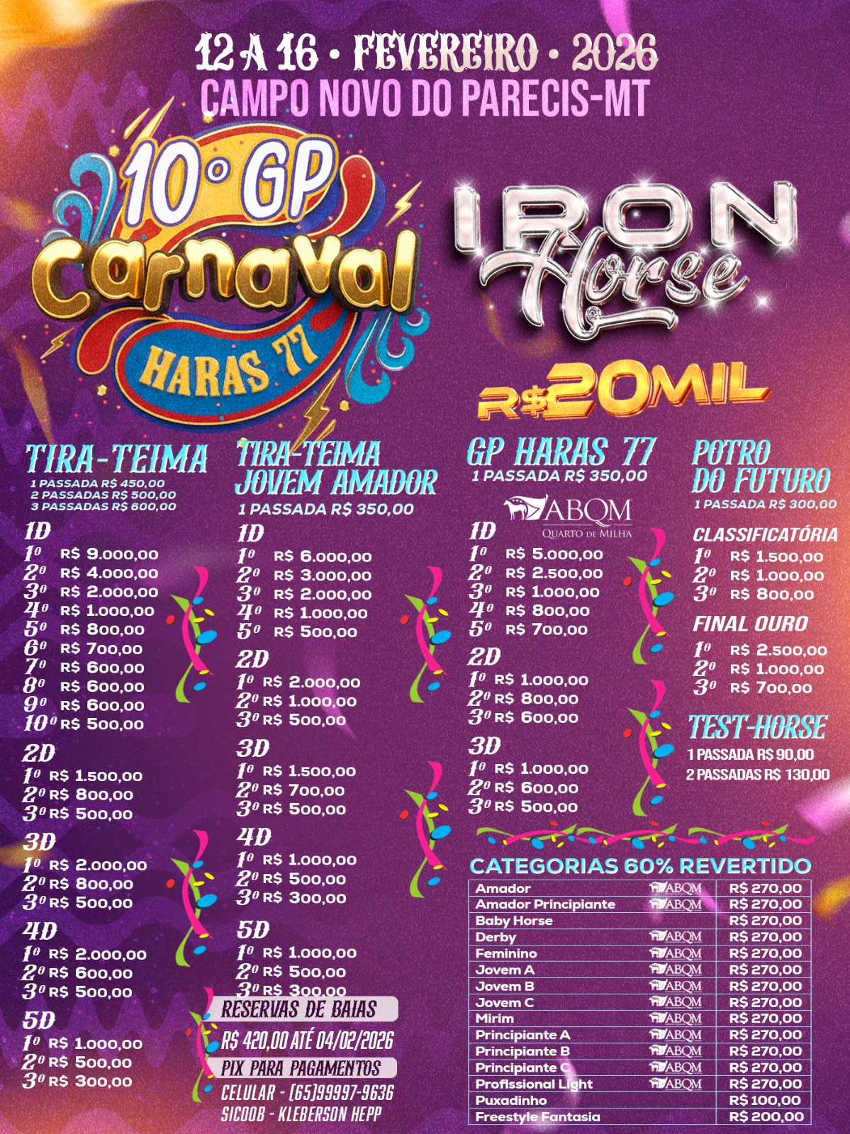 10º GP de Carnaval Haras 77 - 12 a 16 de Fevereiro de 2026 - Haras 77 - Campo Novo do Parecis, MT