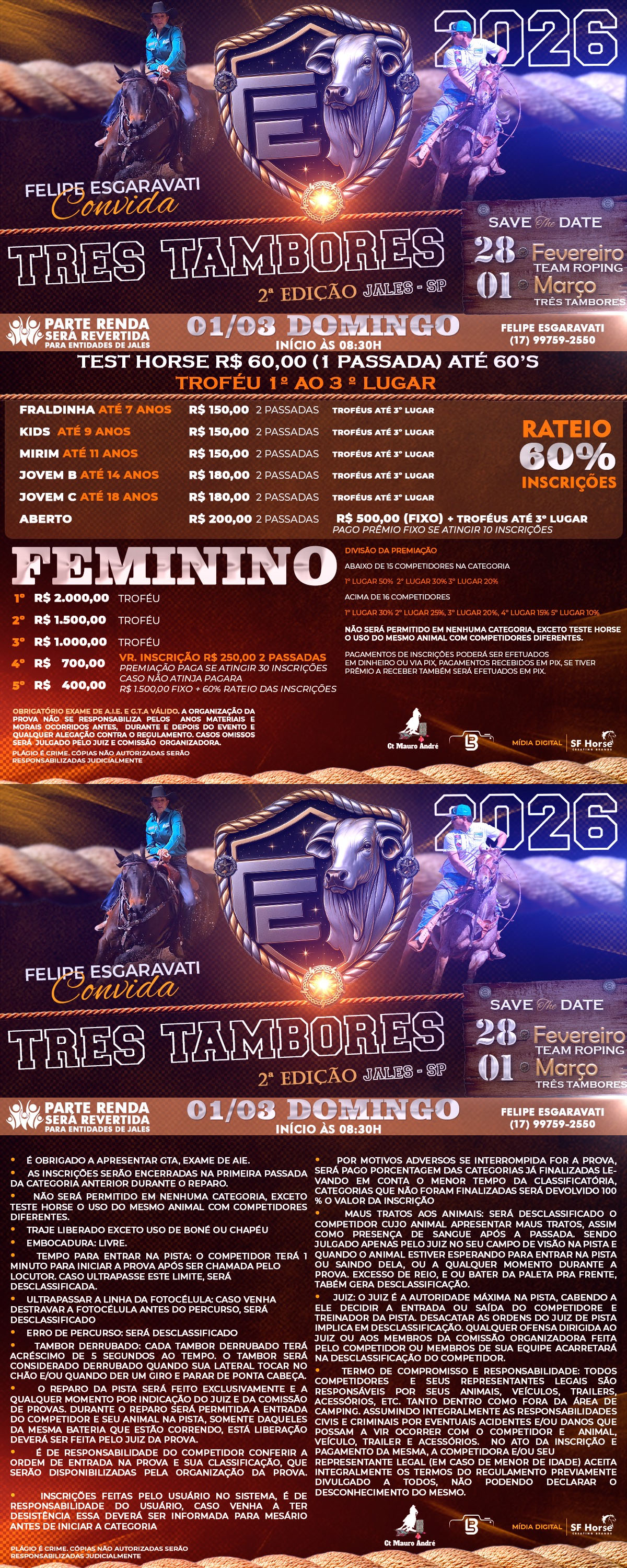 2ª Prova de 3 Tambores Esgaravati - 01 de Março de 2026 - Pq. de Exposições - Jales, SP