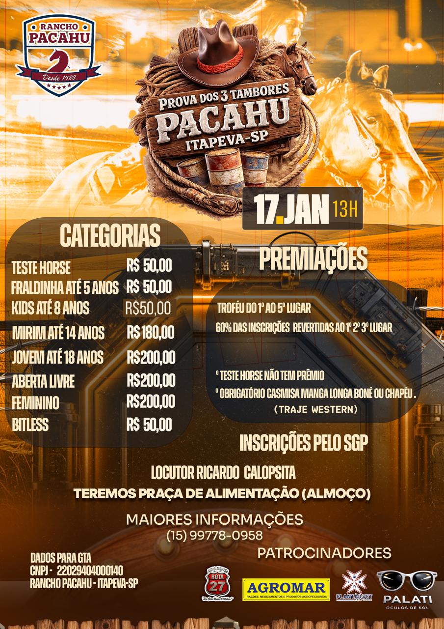 Prova dos 3 Tambores Pacahu - 17 de Janeiro de 2026 - Recinto Pacahu Leilões - Itapeva, SP