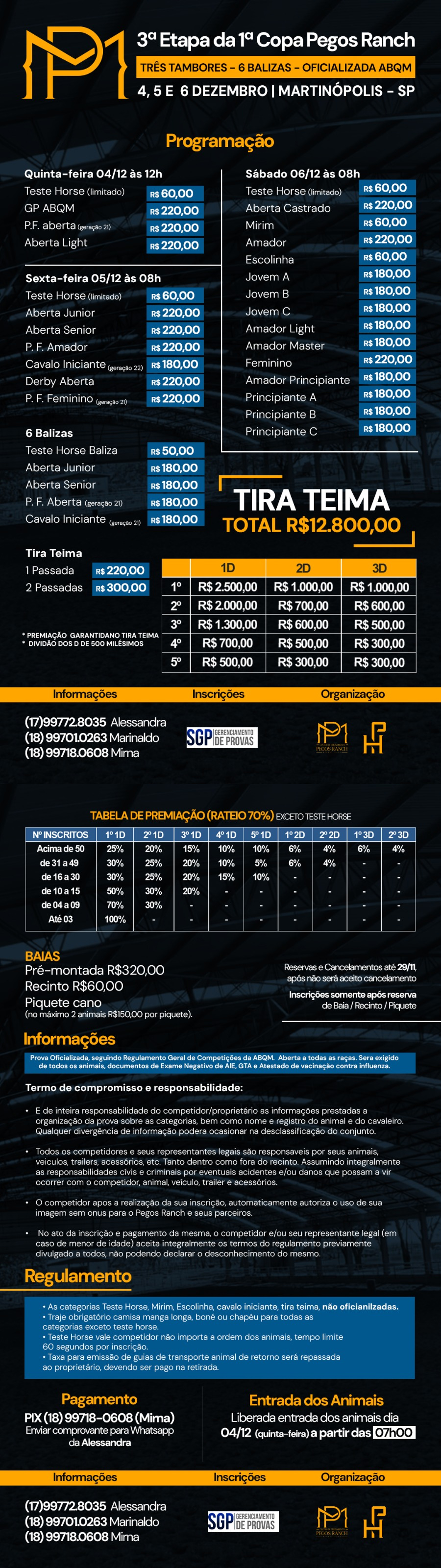 3ª Etapa da 1ª Copa Pegos Ranch 2025 - 04 a 06 de Dezembro de 2025 - Pegos Ranch - Martinópolis, SP