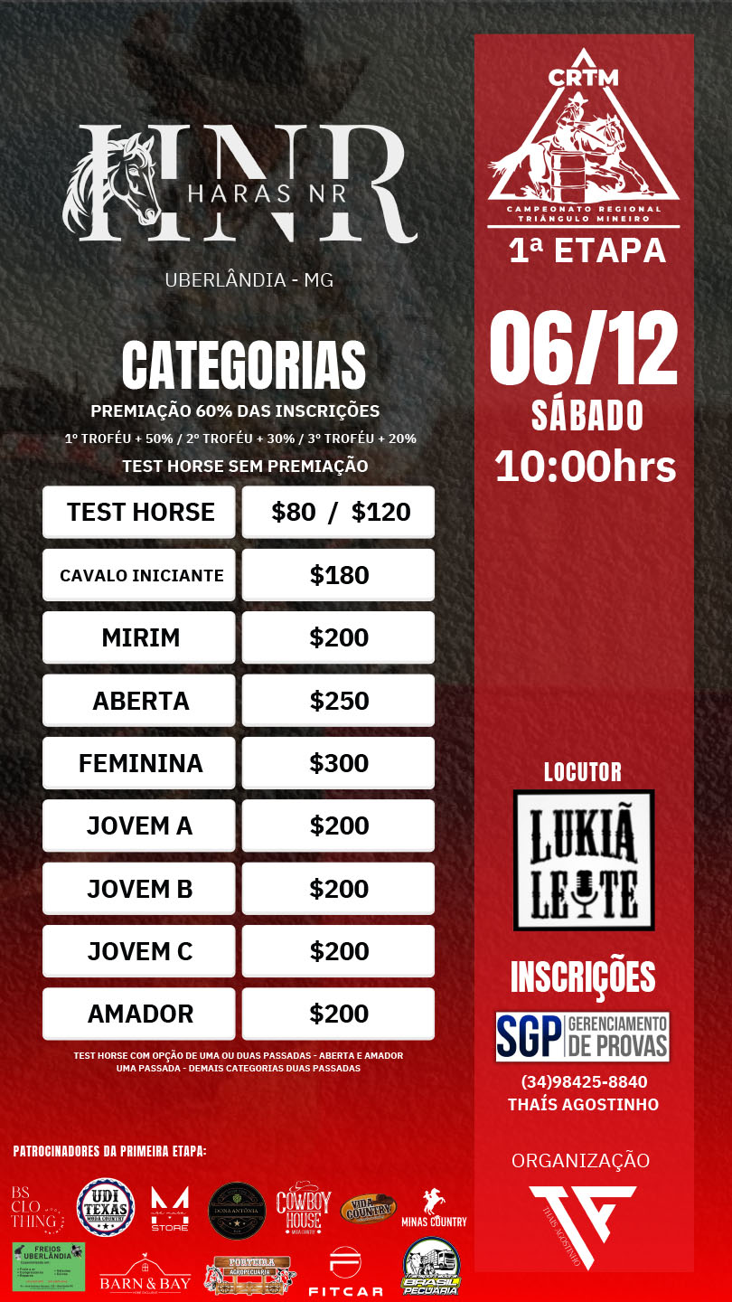 1ª Etapa Camp. Regional Triângulo Mineiro - 06 de Dezembro de 2025 - Haras NR - Uberlândia, MG