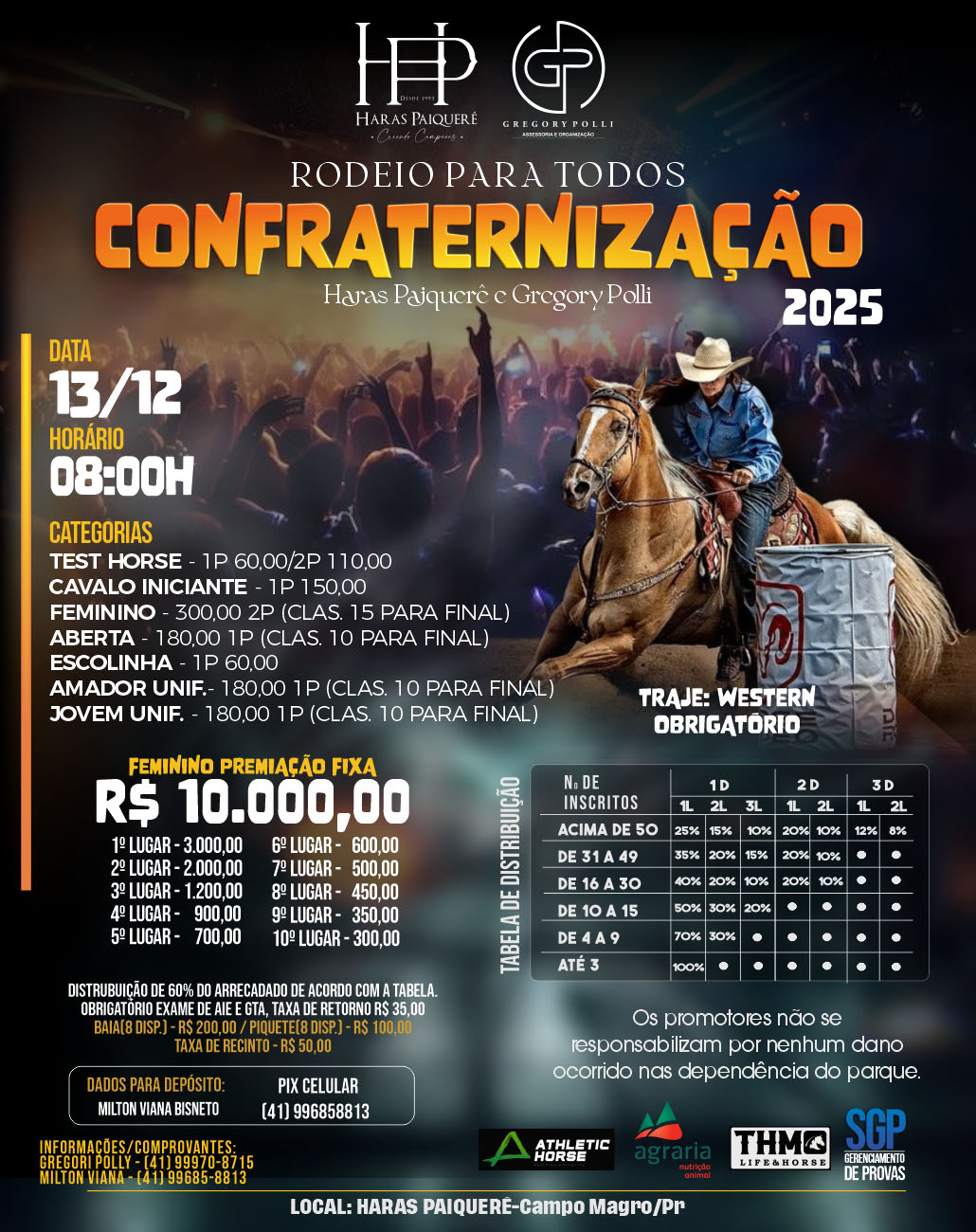 Confraternização Rodeio Para Todos - 13 de Dezembro de 2025 - Haras Paiquerê - Campo Magro, PR