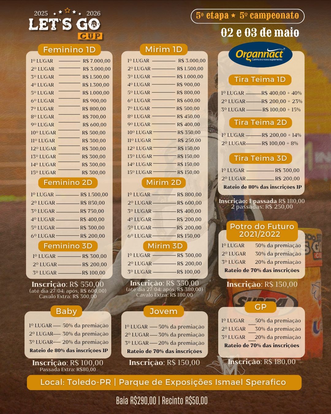 2ª Etapa Copa Organnact 2026 - 09 a 11 de Abril de 2026 - Haras do Lay - Capim Branco, MG