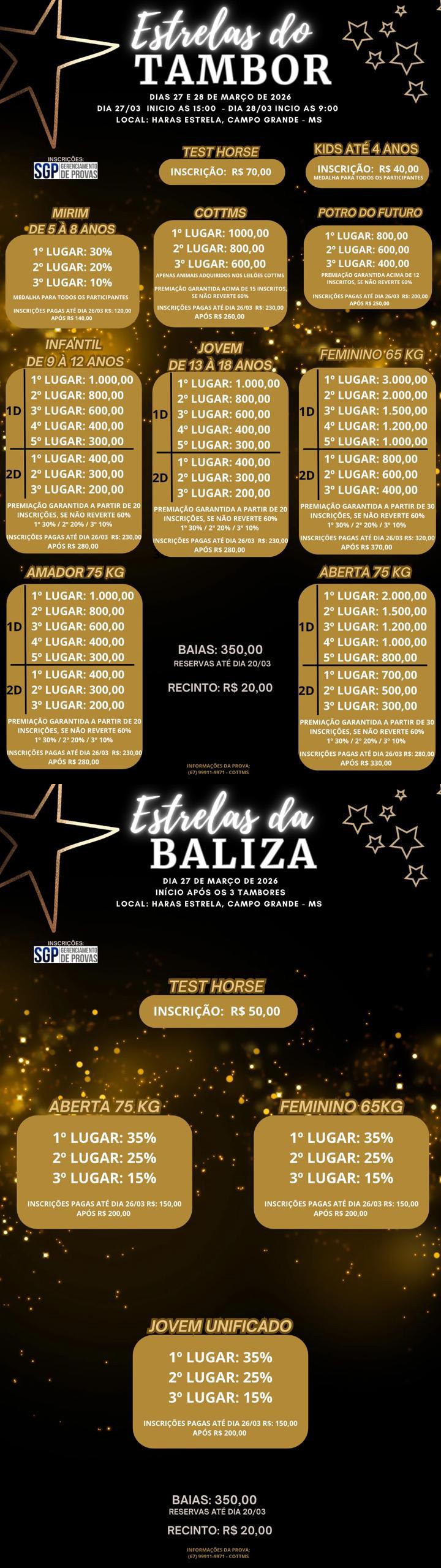 9ª PROVA ESTRELAS DO TAMBOR COTTMS - 27 a 28 de Março de 2026 - Haras Estrelas - Campo Grande, MS