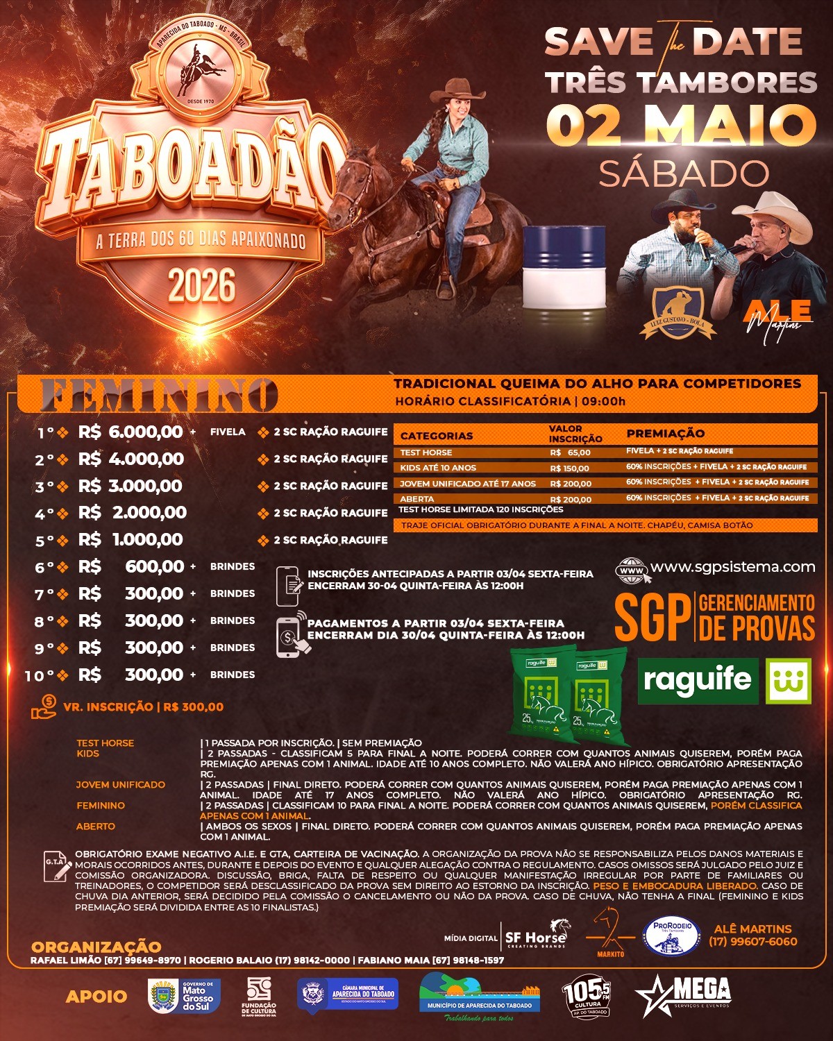 Taboadão 2026 - 02 de Maio de 2026 - Parque de Exposições - Aparecida do Taboado, MS