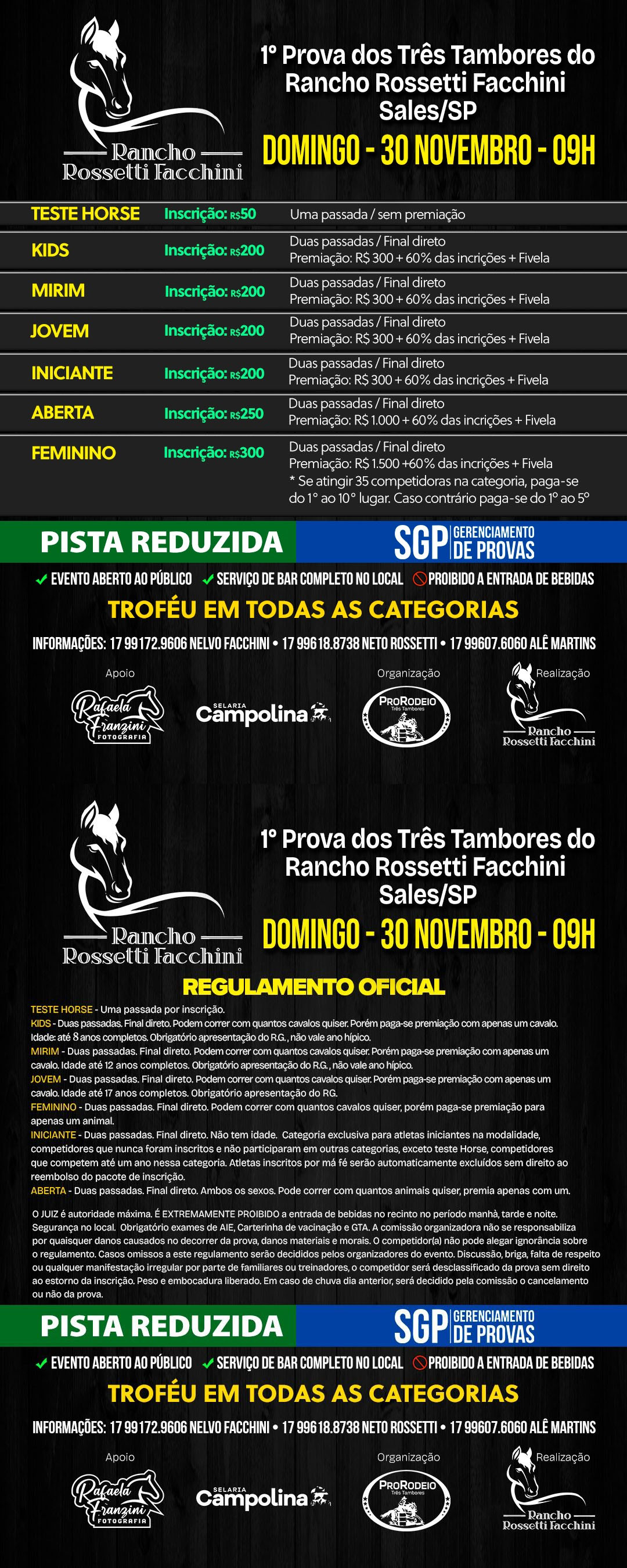 4 Prova Elite Três Tambores- Arena Lair Guimarães - 14 de Novembro de 2026 - Arena Coberta - Regente Feijó, SP