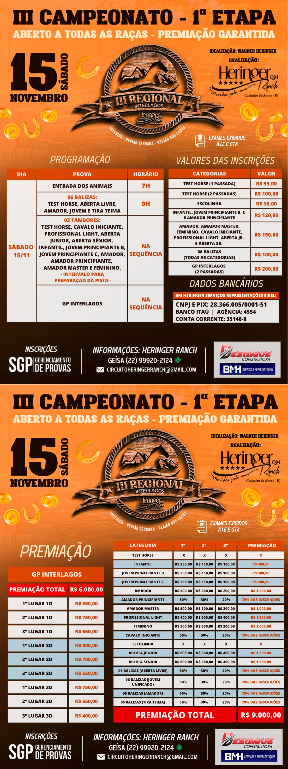 3ª Etapa da IV Regional Interlagos - 07 de Novembro de 2026 - Heringer Ranch - Casimiro de Abreu, RJ