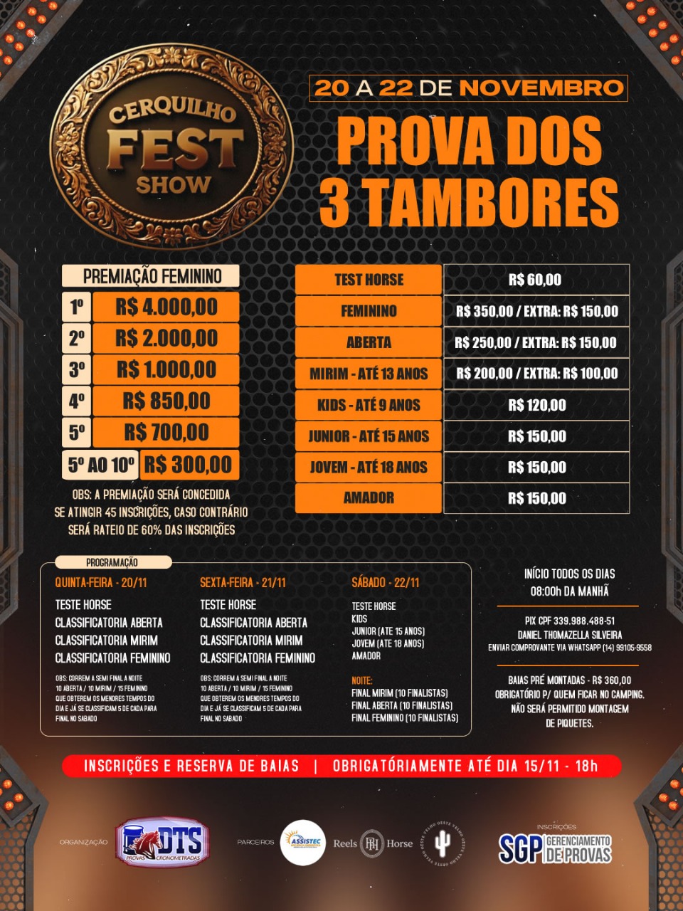 Prova Três Tambores Pacahu - 15 de Novembro de 2025 - Recinto Pacahu Leilões - Itapeva, SP