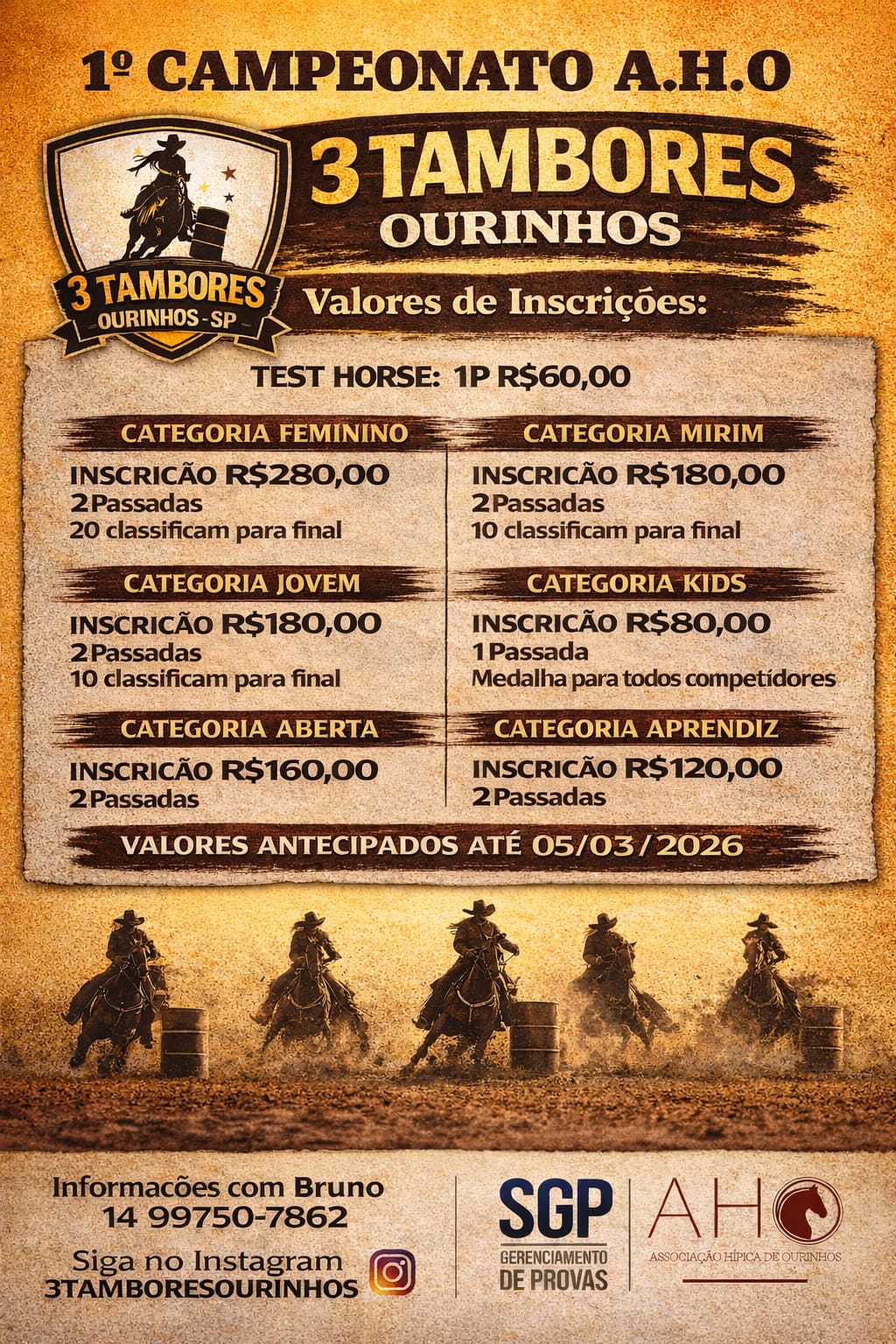 1º Campeonato AHO 3 Tambores de Ourinhos - 07 de Março de 2026 - Parque de Exposições - Ourinhos, SP