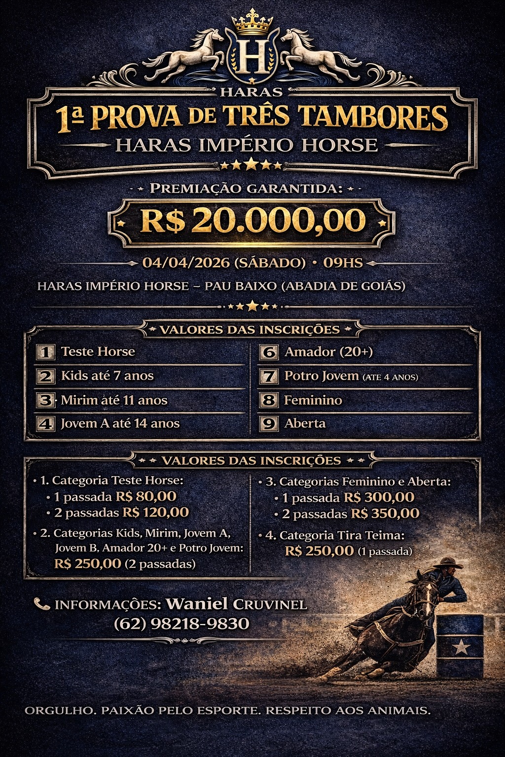 1ª Prova 3T Haras Império Horse - 04 de Abril de 2026 - Haras Império Horse - Abadia de Goiás, GO
