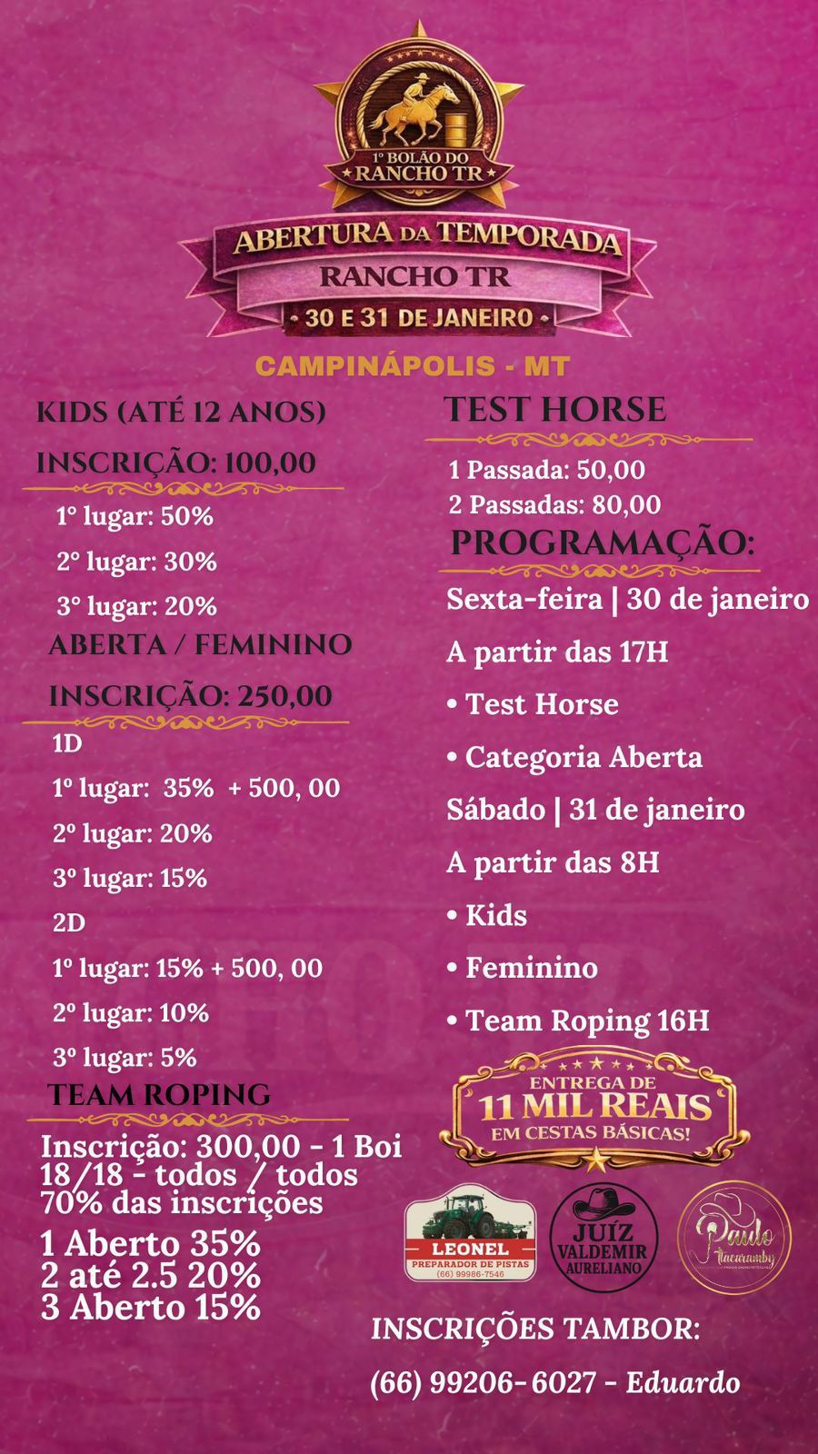 1º Bolão do Rancho TR - 30 a 31 de Janeiro de 2026 - Rancho TR - Campinapólis, MT