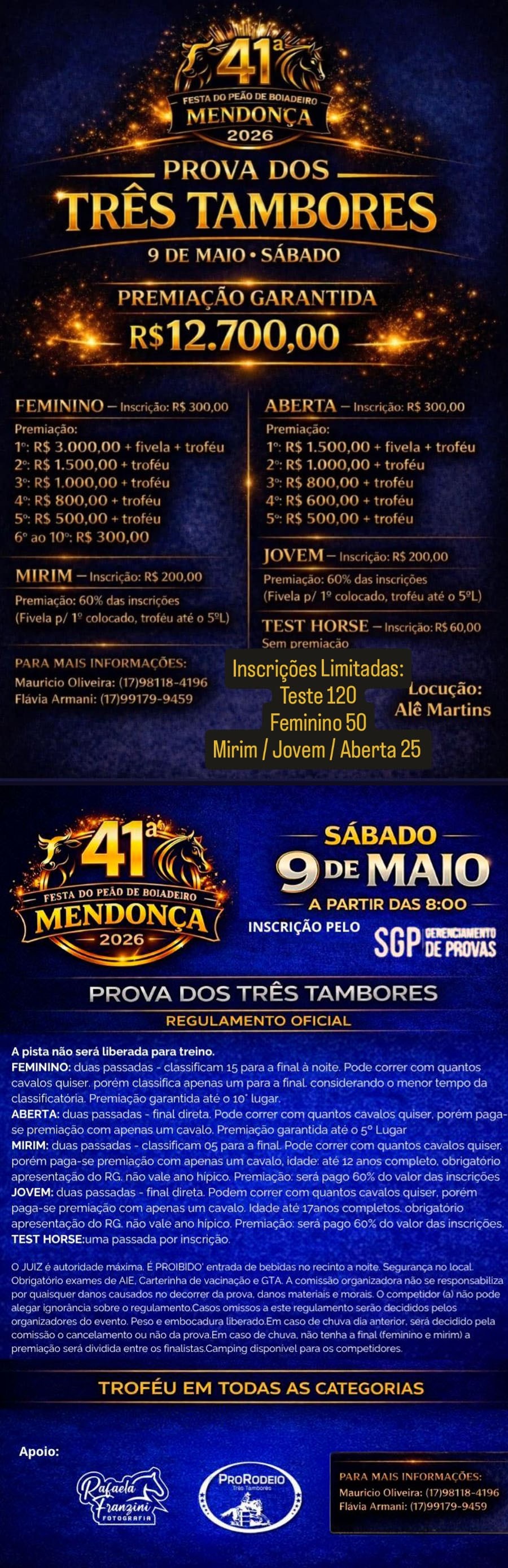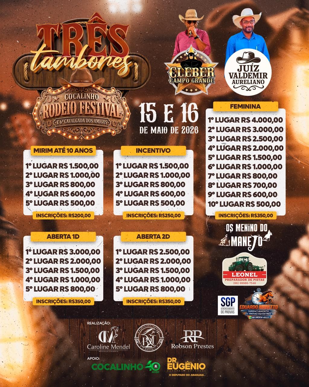 1ª Super Cup 3 Tambores de Borborema - 25 de Abril de 2026 - Clube de Rodeio e de Campo - Borborema, SP