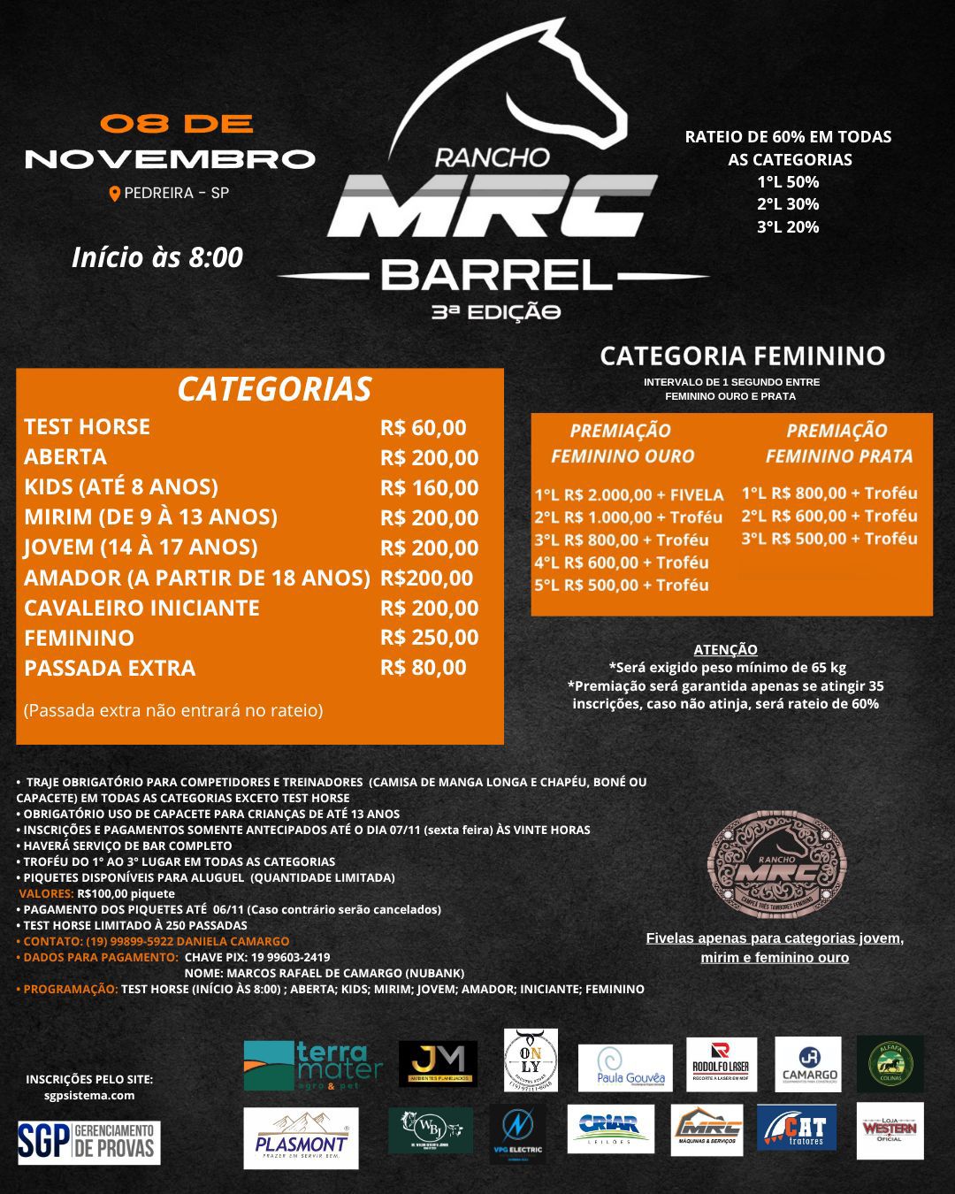 3 Edição Rancho MRC Barrel - 08 de Novembro de 2025 - Rancho MRC - Pedreira, SP