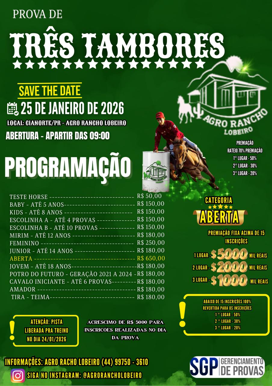 Prova 3T Agro Rancho Lobeiro - 25 de Janeiro de 2026 - Rancho Lobeiro - Cianorte, PR