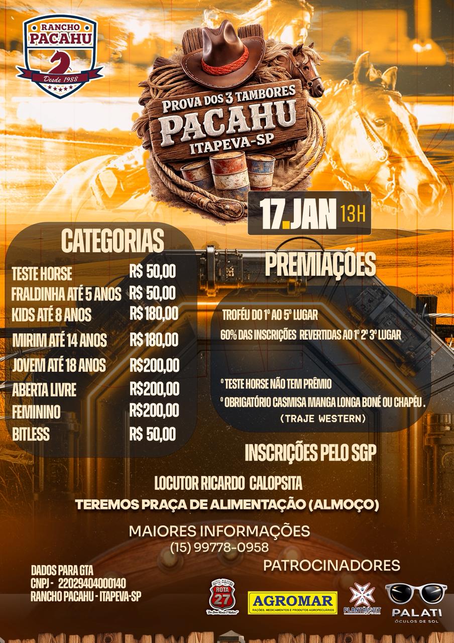 Prova dos 3 Tambores Pacahu - 17 de Janeiro de 2026 - Recinto Pacahu Leilões - Itapeva, SP