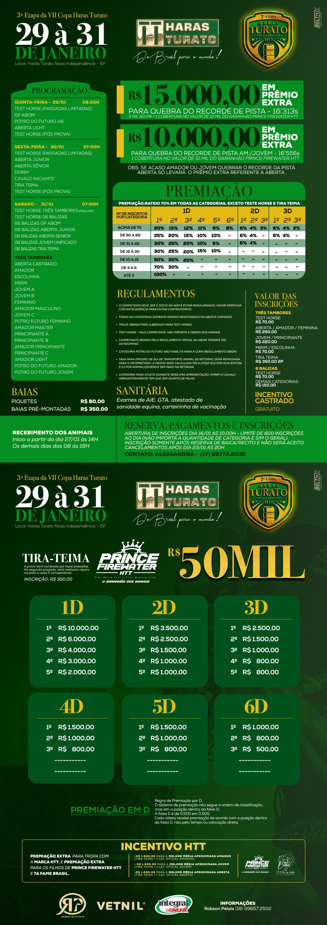 3ª Etapa da VII Copa Haras Turato - 29 a 31 de Janeiro de 2026 - Haras Turato - Nova Independência, SP