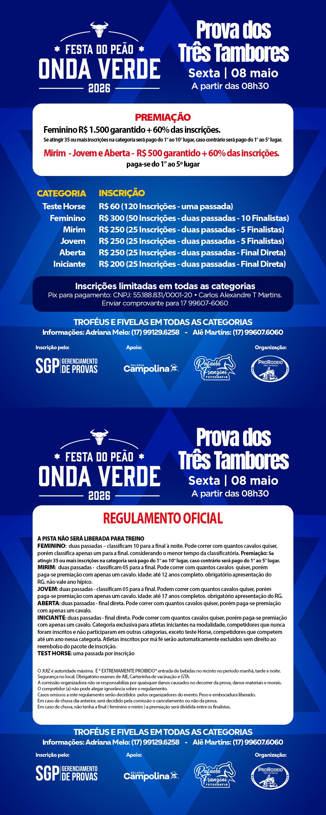 2ª Etapa Copa Rio Preto de Três Tambores - 15 a 16 de Maio de 2026 - Parque de Exposição - Rio Preto, SP