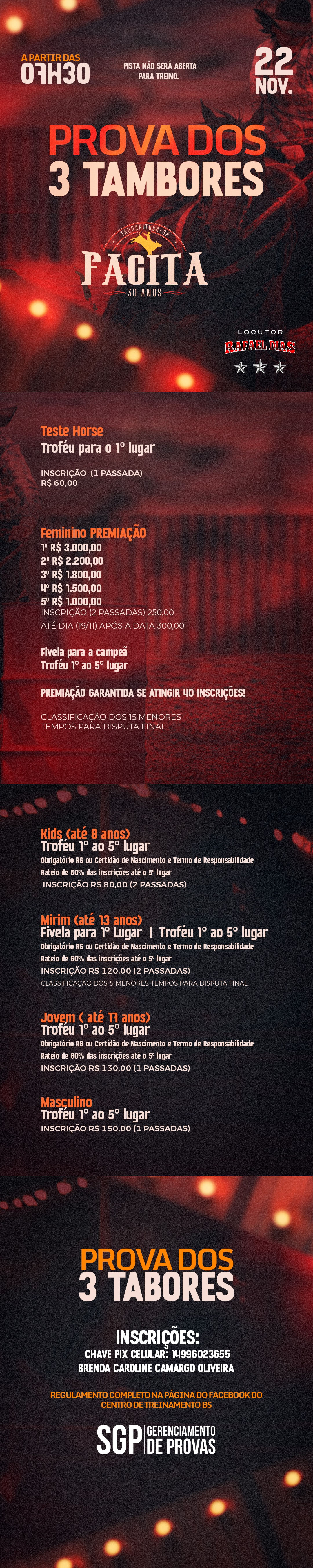 Prova Três Tambores Pacahu - 15 de Novembro de 2025 - Recinto Pacahu Leilões - Itapeva, SP