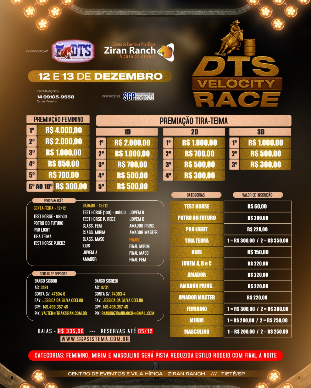 I DTS Velocity Race - 12 a 13 de Dezembro de 2025 - Ziran Ranch - Tietê, SP