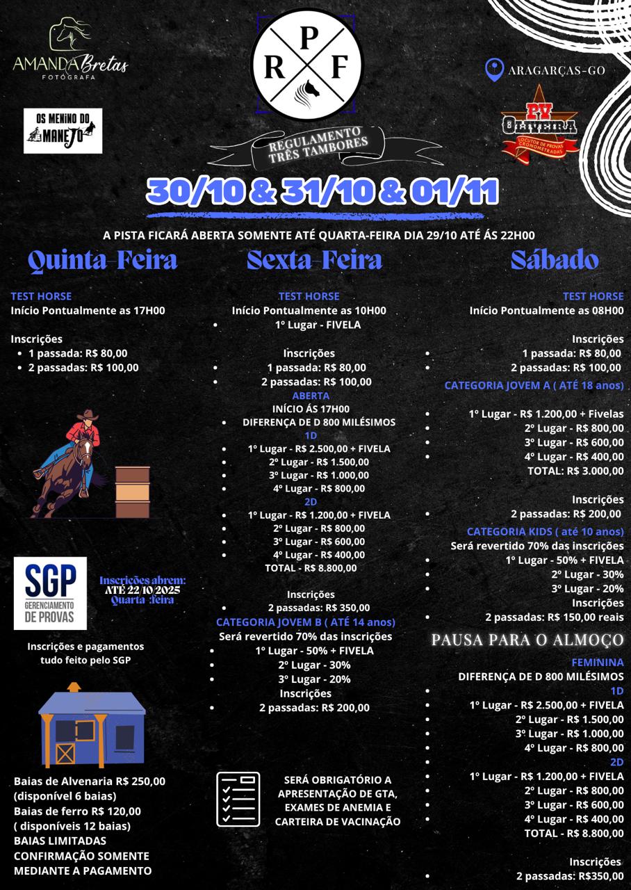 Prova Três Tambores Pacahu - 15 de Novembro de 2025 - Recinto Pacahu Leilões - Itapeva, SP