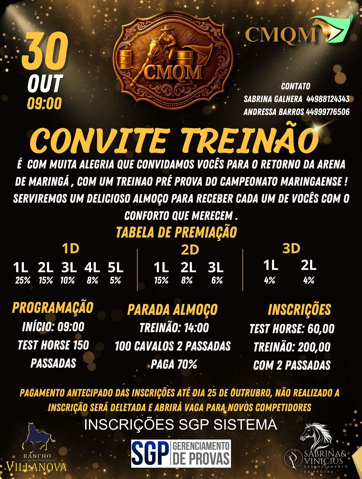 Convite Treinão CMQM - 30 de Outubro de 2025 - Pq. de Exposições - Maringá, PR
