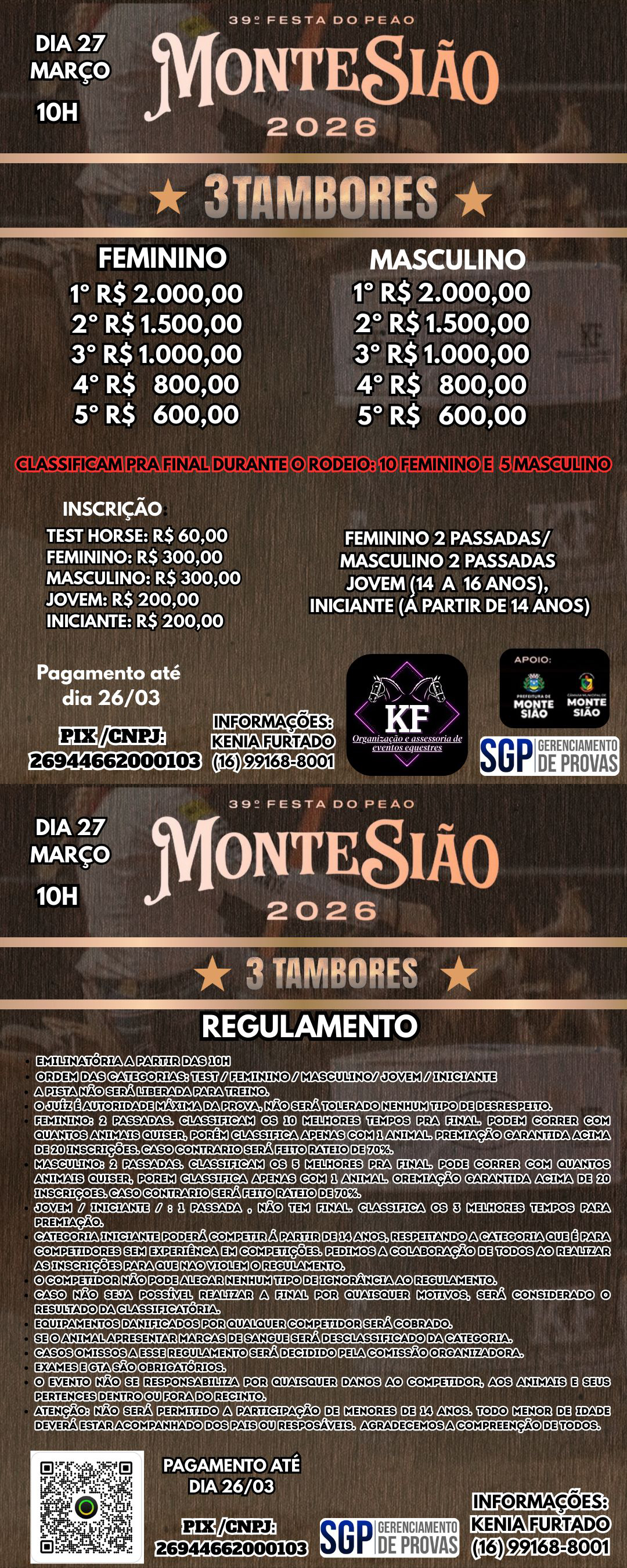 39ª Festa do Peão de Monte Sião 2026 - 27 de Março de 2026 - Recinto de Rodeio - Monte Sião, MG