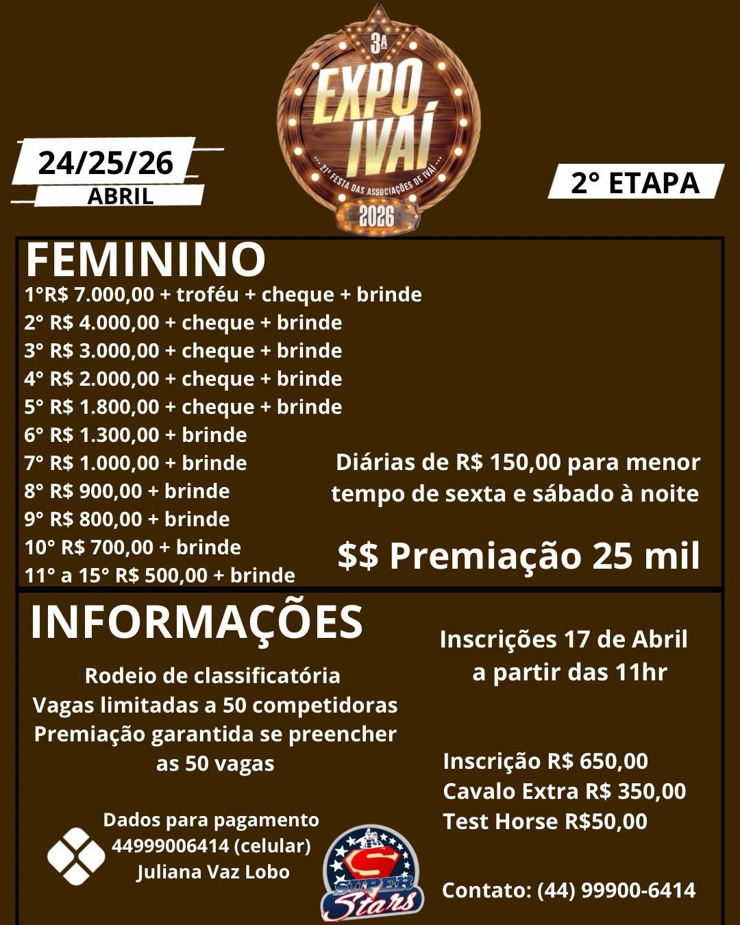 ExpoIvaí Super Stars IV Edição - 24 a 26 de Abril de 2026 - Parque de Exposições - Ivaí, PR